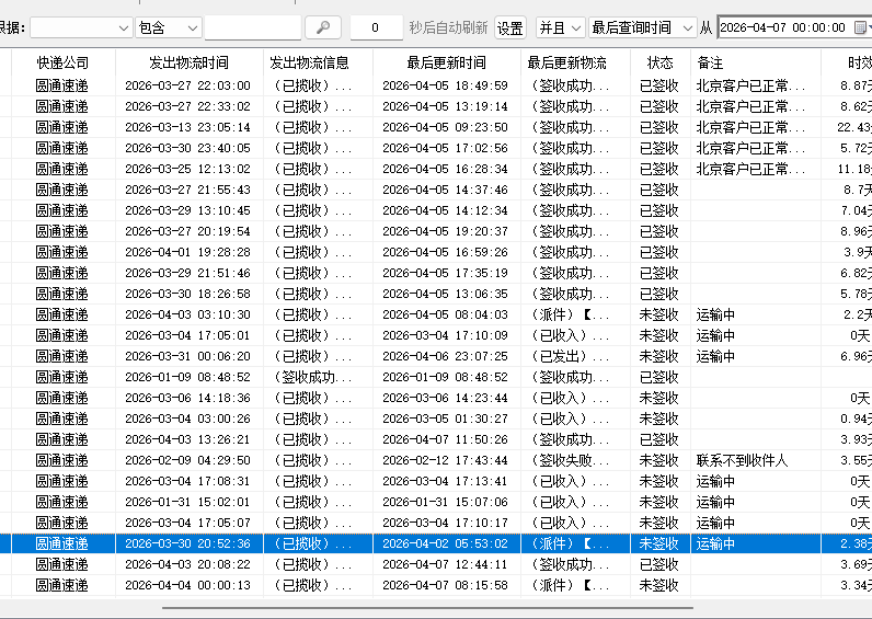 早上9点:批量查询昨日发货单号,确认签收情况,处理未签收