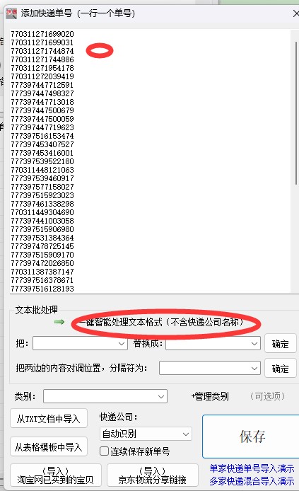 导入单号时,经常会遇到单号中夹杂空格、逗号、换行符等特殊格式,快递批量查询高手提供一键清除功能,自动处理带格式或其他符号的单号,省去手动清理的麻烦。