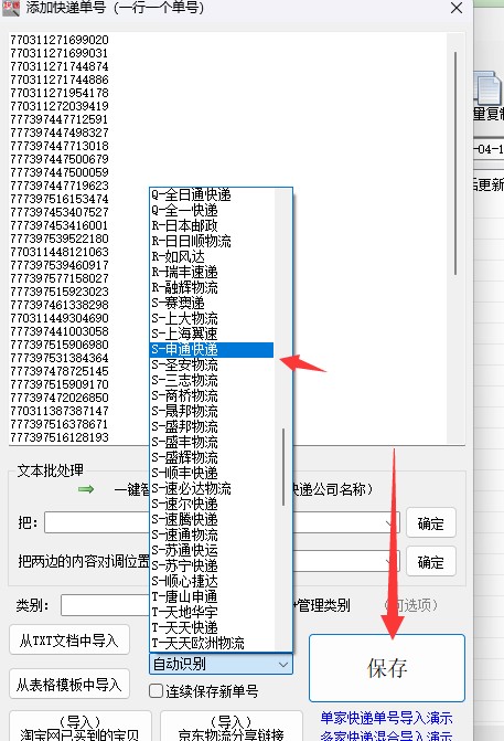 第四步:选择对应的快递公司保存,软件自动查询物流信息。