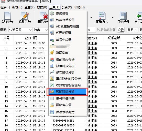 采用高并发技术,查询物流速度快,几百单快递1分钟搞定。